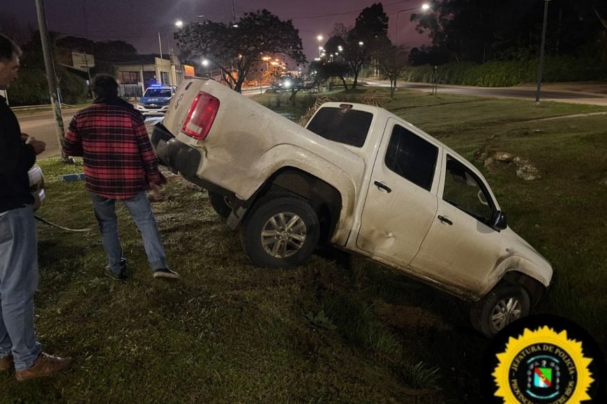 Por circunstancias que tratan de establecer, una camioneta Volkswagen Amarok, conducida por un hombre de 43 años, venía circulando por Av. Pte Perón de este a Oeste y, en la zona de la rotonda de acceso a Villa Adela, perdió el control de rodado y despistó.