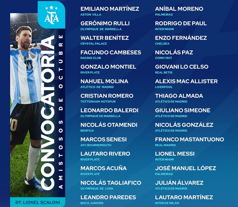 Por otro lado, fuera de las novedades por los nuevos convocados, se sumaron a la nómina los regresos del mediocampista del Chelsea Enzo Fernández y el defensor de Concordia del Bournemouth Marco Senesi, mientras que José López, la figura de Palmeiras, se mantuvo en la consideración del entrenador.