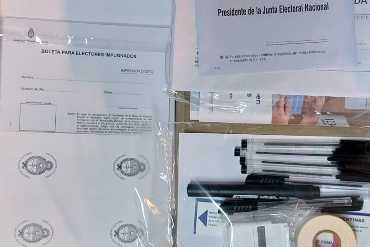 También se incorporan precintos, credenciales para las autoridades de mesa y una caja de útiles con bolígrafos indelebles, cinta adhesiva, fibrones, sellos, reglas, fajas de seguridad, normativa electoral y sobres para los distintos procedimientos previstos durante la jornada (boletas reemplazadas, votos recurridos e impugnaciones de identidad).