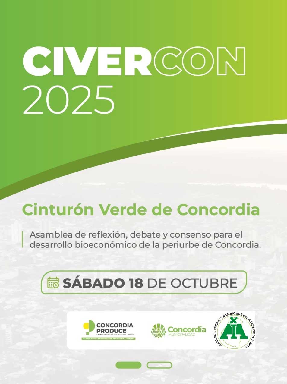 Winograd invitó a todos los que tengan interés en el desarrollo periurbano a confluir el 18 de octubre en el Centro de Convenciones. “El 17 arranca Concordia Produce y el 18, el sábado, o sea, el segundo día de Concordia Produce, desde las nueve de la mañana, estamos nosotros reunidos en una de las salas del centro de convenciones, con nuestra actividad que le pusimos de nombre Cibercon, Cinturón Verde de Concordia”.