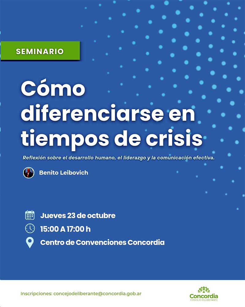 El evento está especialmente dirigido a la comunidad empresarial, emprendedores y profesionales que buscan fortalecer sus habilidades de gestión y encontrar nuevas vías de crecimiento en un contexto desafiante.El experto, a través de su conocimiento y la base de su obra literaria, compartirá perspectivas y metodologías para transformar los desafíos de la crisis en auténticas oportunidades de diferenciación y competitividad.