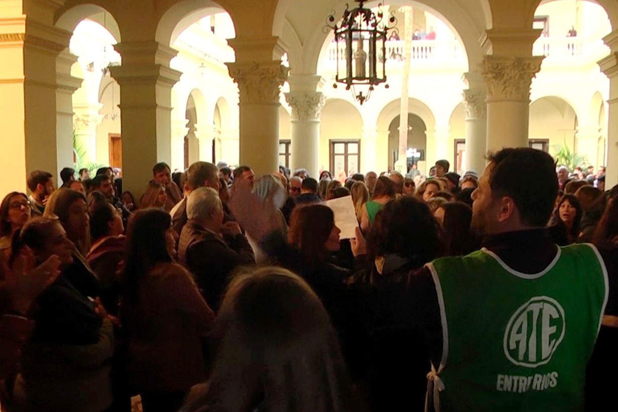 En la ocasión, detalló que el reclamo se centra en dos ejes principales: la eliminación de 86 suplencias en el Consejo General de Educación (CGE) y la reducción del 25% en el pago de horas extras a trabajadores estatales.