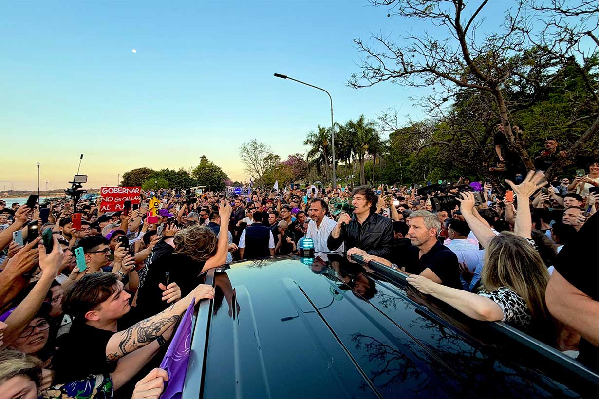 Megáfono en mano, a la vera del río Paraná, frente a la amplia concurrencia, Milei expresó: “Vamos a ganar en la tierra de Justo José de Urquiza, en la tierra de la organización nacional. Vamos a dejar de ser una país de bárbaros para convertirnos en la primera potencia mundial”.
