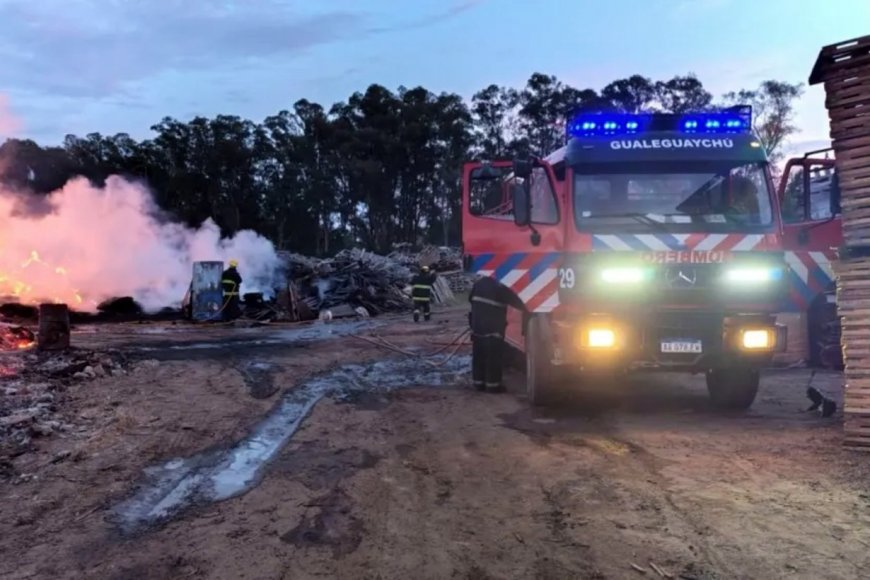 El segundo jefe de Bomberos Voluntarios de Gualeguaychú, Jorge Arce, detalló que “cerca de las 11.05 lo dimos por extinguido al incendio con el regreso de la última dotación. Se trata de un acopio de pallets usados que son reciclados por la familia dueña”.