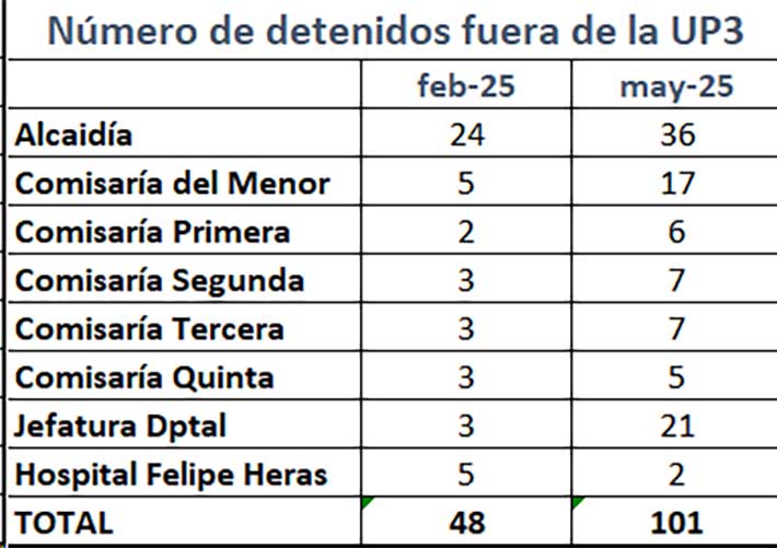 La suma de quienes están repartidos entre Alcaidía y comisarías se duplicó. Pasó de 48 a 101 de febrero a mayo de 2025.